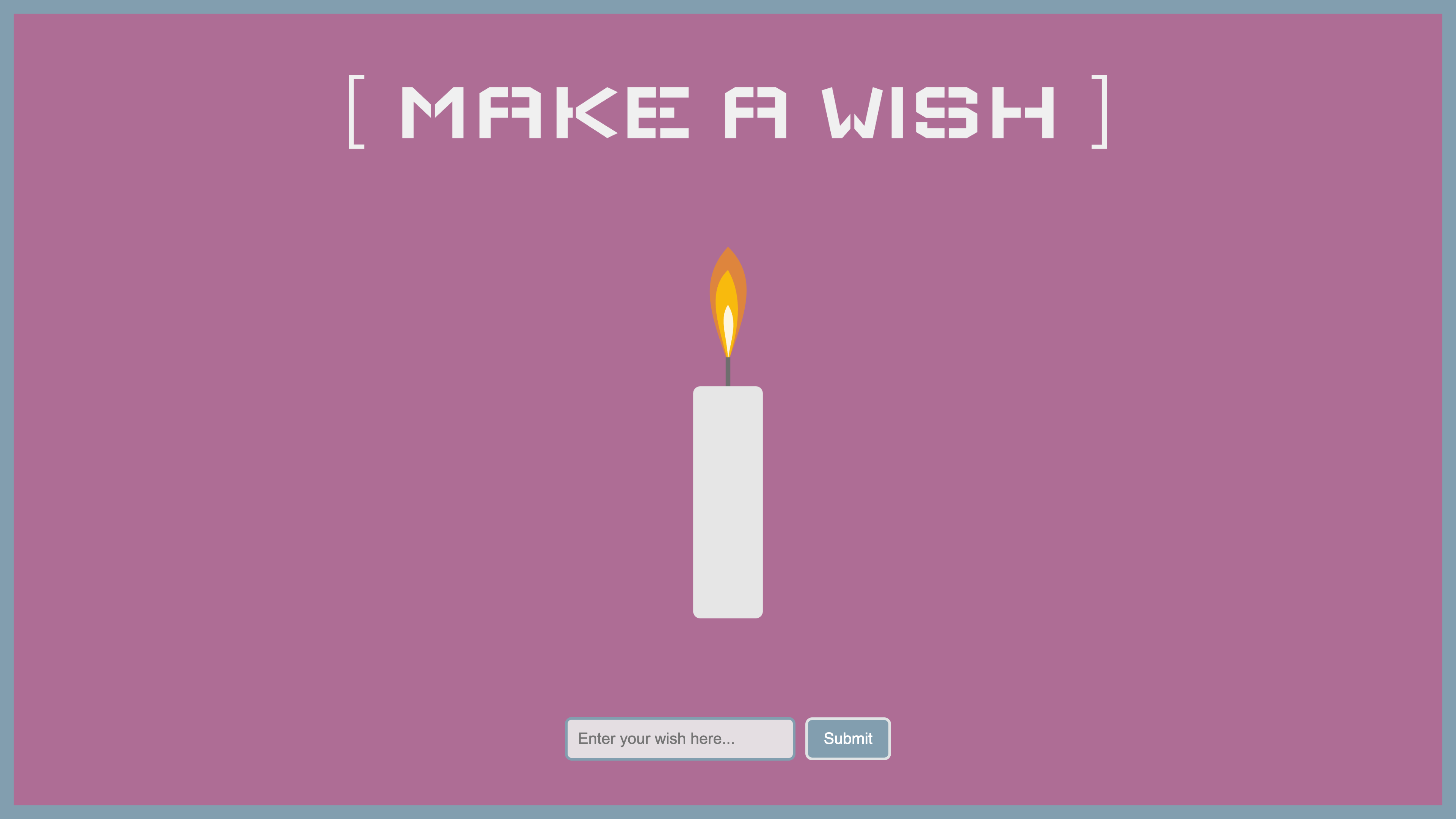 Wishes is an interactive installation composed of a physical candle and a digital screen. The candle, embedded with Arduino and sensors, detects a participant’s breath as they blow it out. The paired screen responds with a personalized message of luck, transforming a familiar gesture into a quiet, everyday ritual of intention.
